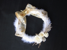 白とゴールドでまとめた優しい雰囲気のリースです。