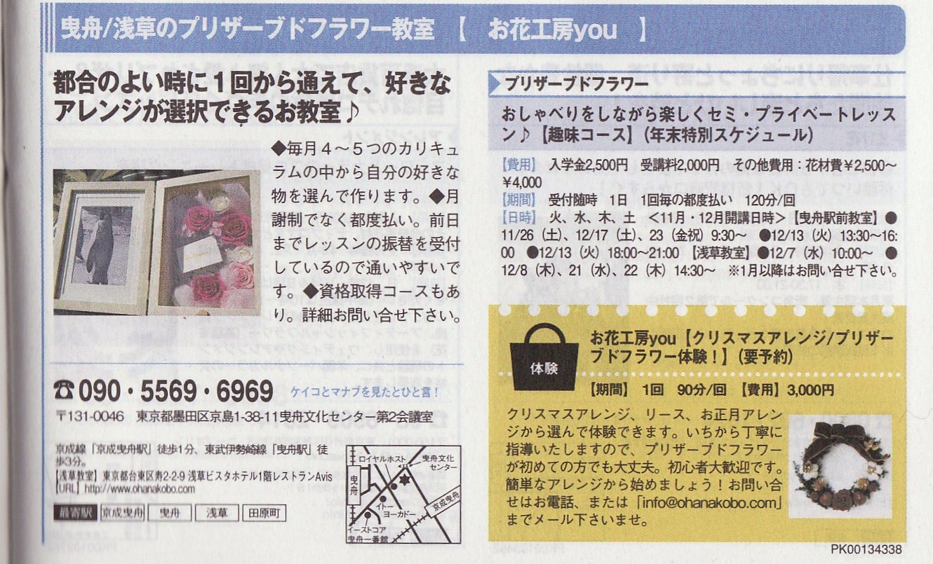 ケイコとマナブ (プリザーブドフラワー教室)に掲載されました!