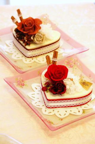 104)ハートのケーキ バレンタインギフトにも最適なハートのフラワーケーキを作ります。ガラスプレート付きです。 |