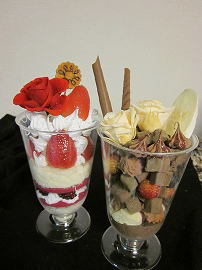 112)チョコ&いちごパフェ(オリジナル) チョコとイチゴのパフェの2つをつくります。いつものアレンジと違ったものをお楽しみ下さい。 |