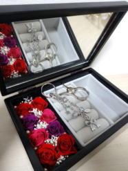 グローブホルダーかブレスレットが選べるこちらのアレンジは、母の日のプレゼントにもいいと思います。