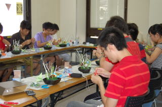 夏期の短期ステイの外国人の方に和のアレンジレッスンをしました。おみやげに持ち帰りやすいようBOX入りです。
